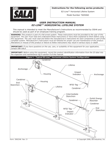 3m Dbi Sala Ez Line Retractable Horizontal Lifeline System 7605060 1 Ea Instruction